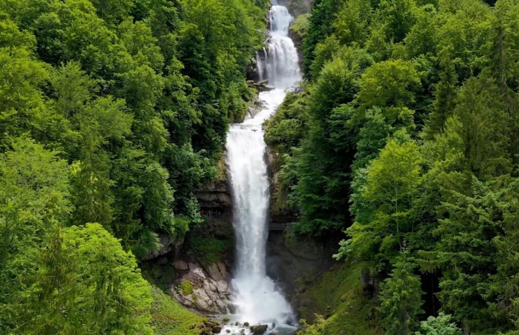 Switzerland’s tallest single-fall waterfall is the Mürrenbach Falls. In Stechelberg, in the Lauterbrunnen Valley, the waterfall is close to the cable car’s valley station to Mürren. The Mürrenbach Falls, which has a drop height of 417 meters, is reportedly the tallest single-fall waterfall in Switzerland.